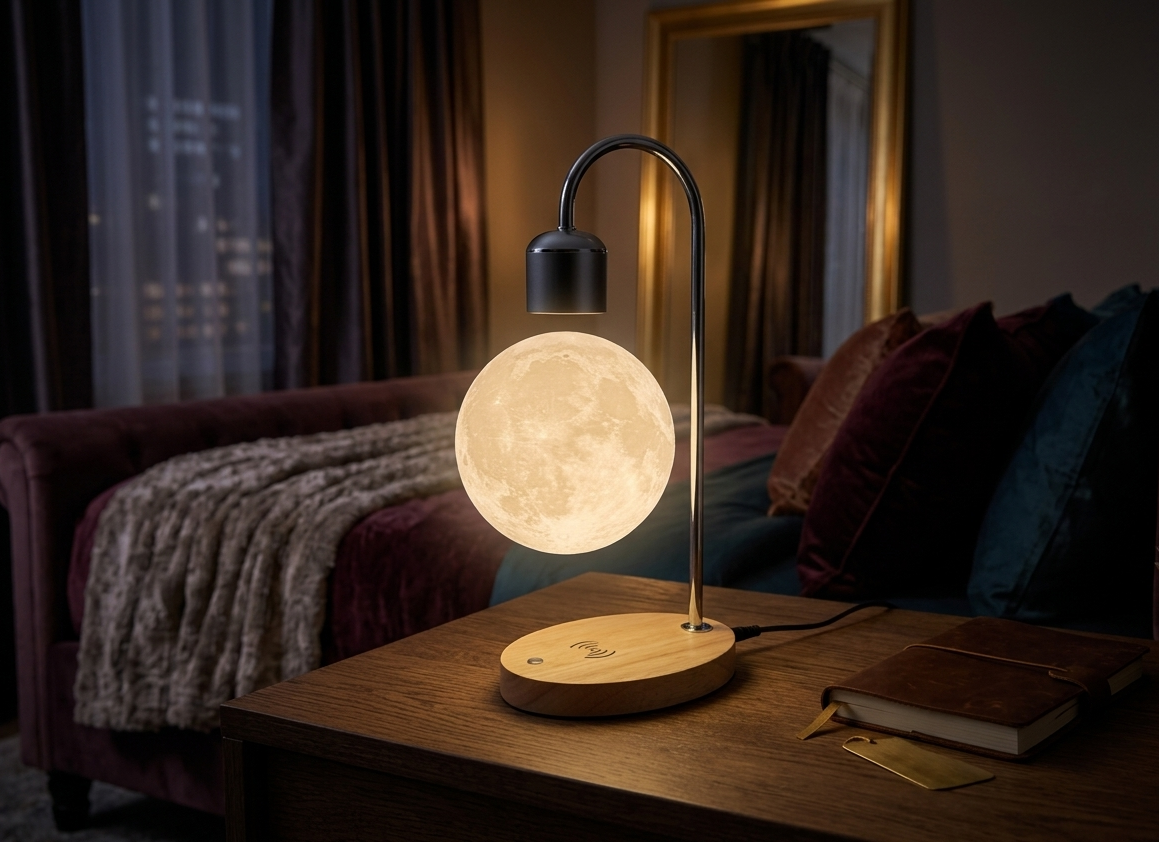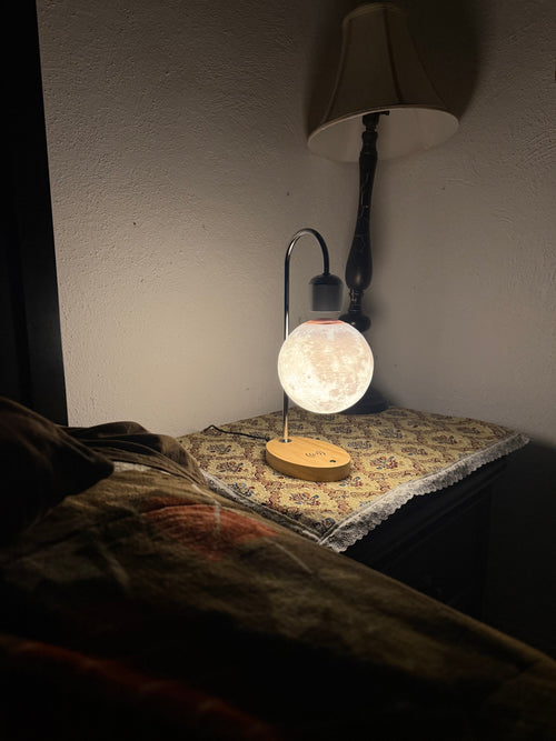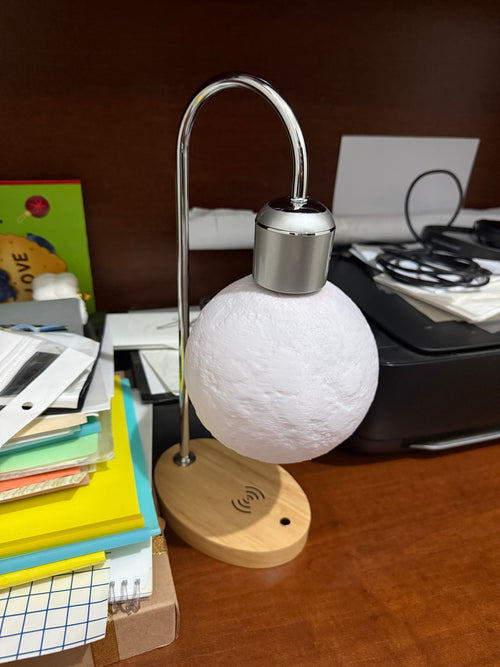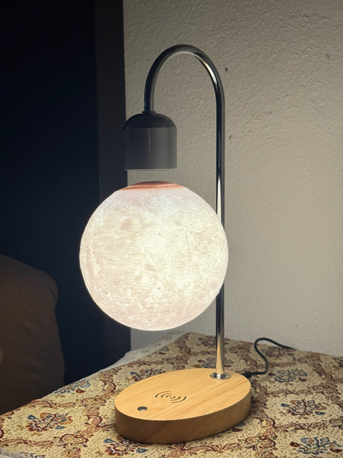 The system features a safety magnet that immediately attracts the moon to the base to prevent it from falling to the ground and being damaged by impact.